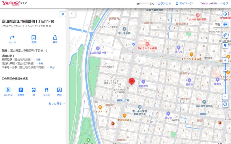 まずはYAHOO!マップにアクセスして保管場所の住所を入力します。