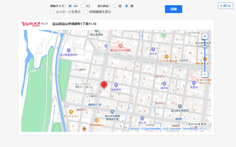 インターネット地図には有名なところではGoogle MAPやYAHOO!マップがありますが、私は使いやすさや余計なものを印刷しないシンプルなところが気に入ってYAHOO!マップを使用しています。